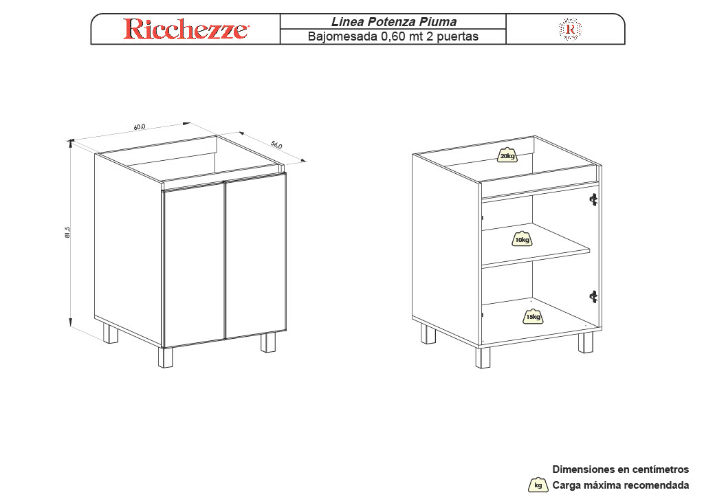 Dimensiones 60 × 81,9 × 57,7 cm